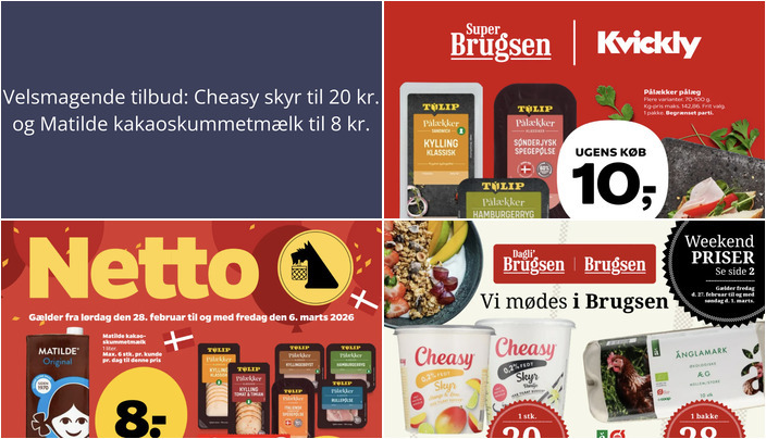 Hos Netto kan du få Matilde kakaoskummetmælk til kun 8 kr. pr. liter. Der er en begrænsning på maksimalt 6 stk. pr. kunde pr. dag til denne pris. Tilbuddet gælder fra lørdag den 28. februar til fredag den 6. marts.